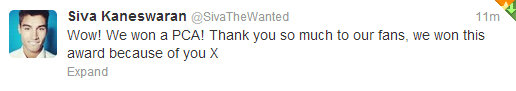 Nathan: You know what, it was all the fans on Twitter that we saw and every day they worked so hard. Every time one of the other artists trended cause their fans were voting for them, they were like, "Quick! Let's trend, let's trend!" and anything that anyone else could do on Twitter, they were matching and that was really amazing to see such great support for us.